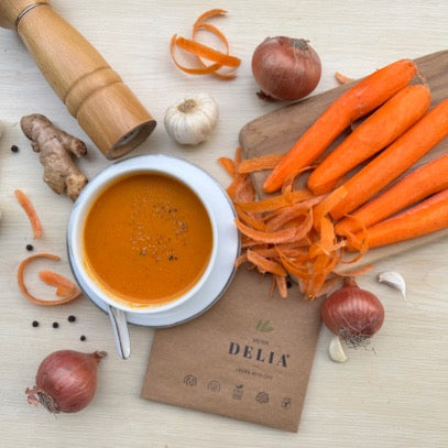 Unlock the sweetness of carrots and the zing of ginger with our Roasted Carrot and Ginger Soup Kit! This carefully curated kit by Delia brings together the finest organic ingredients to create a deliciously comforting soup that's perfect for any time of the day.